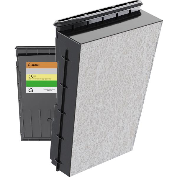Yhdistelmäsuodatin Optrel Swiss Air puhallinmalliseen hengityksensuojaimeen. Suojaa kaasuilta ABEK1 mukaisesti, sekä hiukkasilta.