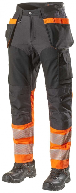 Joustavat Hi-Vis-hyväksytyt luokan 1 työhousut, joiden päämateriaalissa on hyvä kulutuskestävyys. Useita neljään suuntaan venyviä paneeleja, jotka parantavat liikkuvuutta ja käyttömukavuutta.
