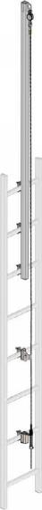 Toimitukseen sisälly: Vaijeri päätöksin molemmissa päissä, ylimpiin tikkaiden puoliin asennettava jatkovarsi joka ulottuu 1,3 m ylimmästä puolesta ylöspäin mahdollistaen turvallisen poistumisen ja järjestelmään ylhäältä tulemisen, ala-. ja yläpään kiinnityspisteet, kaksi välivarmistuspistettä ja kiristin.
