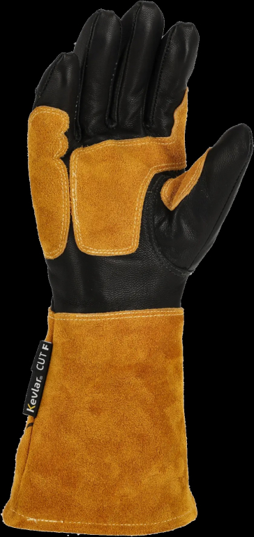 Laadukkaasta mustasta pukin pintanahasta valmistettu hitsauskäsine, jossa naudan haljasnahasta valmistettu kangasvahvisteinen ranneke. Laadukkaat materiaalit tarjoavat täydellisen istuvuuden ja fleecevuori tekee käsineistä käyttömukavat. Pitoa parantavat vahvikkeet lisäävät kestävyyttä ja pehmusteet suojaavat sekä hankaukselta että kuumuudelta. Käsineessä on viiltosuojaluokka F sekä Kevlar®-ompeleet ja se kestää kuumuutta jopa 100 °C:seen saakka. Sormituntuman parantamiseksi käsineessä on ainutlaatuiset esitaivutetut sormenpäät.