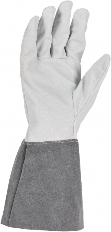 Laadukkaasta pukin pintanahasta valmistettu hitsauskäsine, jossa naudan haljasnahasta valmistettu ranneke. Pehmeä ja joustava, hyvä istuvuus, kestää kosketuslämpöä jopa 100 °C:seen saakka.