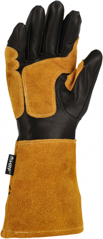 Laadukkaasta mustasta pukin pintanahasta valmistettu hitsauskäsine, jossa naudan haljasnahasta valmistettu kangasvahvisteinen ranneke. Laadukkaat materiaalit tarjoavat erinomaisen joustavuuden ja täydellisen istuvuuden. Pitoa parantavat vahvikkeet peukalossa, etusormessa ja kämmenessä lisäävät kestävyyttä, kun taas sivupehmusteet suojaavat sekä hankaukselta että kuumuudelta. Sormituntuman parantamiseksi käsineessä on ainutlaatuiset esitaivutetut sormenpäät. Kestää kuumuutta jopa 100 °C:seen saakka.