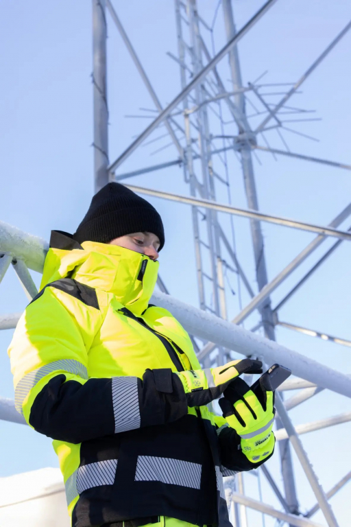 Käsineen painosta 65 % on kierrätysmateriaaleja. Avoin turvaranneke kielekkeellä takaa helpon käytön, kun taas kestävä Microthan®+-materiaalista valmistettu kuvioitu kämmen parantaa pitoa. Tuulenpitävä ja soveltuu kosketusnäytöille.