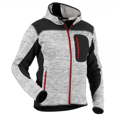 Neulottu softshelltakki, miellyttävän pehmeästä materiaalista. Takissa softshell -vahvistukset niissä kohdissa, joihin kohdistuu eniten kulumista. Kontrastiväriset vetoketjut ja pieni heijastava Blåkläder -painatus takana. Vetoketjulliset sivutaskut ja rintatasku. Takissa on pidennetty selkäosa ja huppu. Takkia voidaan käyttää sekä ulkopuserona että välikerroksen vaatteena ulkotakin alla.